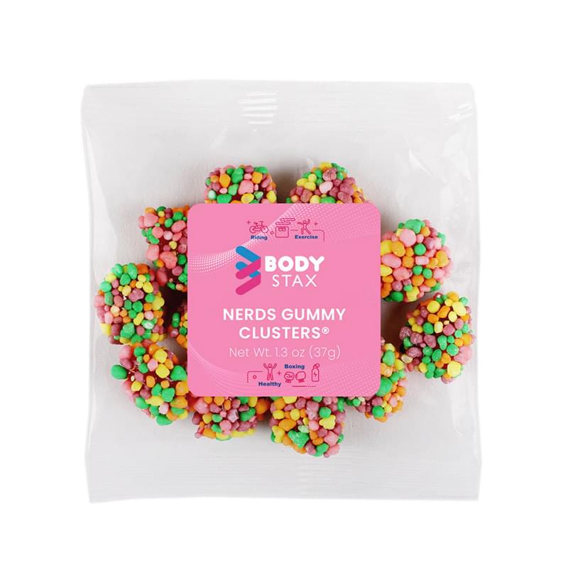 A crunchy, chewy, wildly fruity mashup! Nerds Gummy Clusters® combine the poppable fun of tangy Nerds candy with a soft, fruity gummy center: a sweet treat that hits all the right textures. Perfect for adding a colorful twist to candy buffets, events, or giveaways. 1.3 oz taster packets are perfect for trade show and event giveaways.