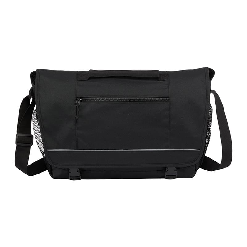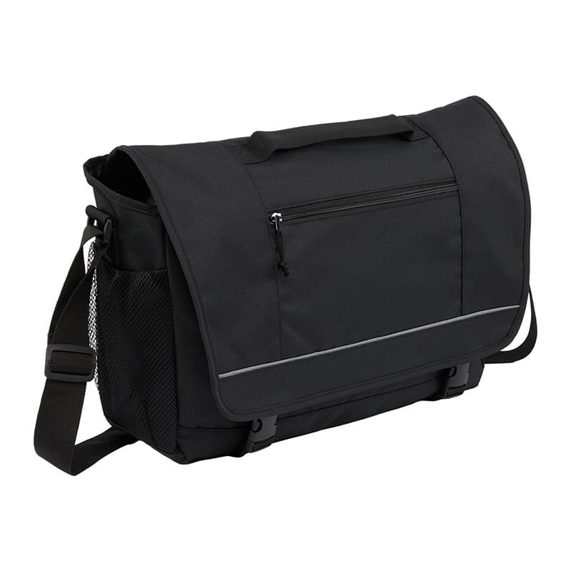 The classic messenger bag is your next go-to for business commuting. Made with Recycled 600D Polyester, this messenger is packed full of features. It has two side water bottle pockets, and a top grab handle to easily access. It also has an adjustable shoulder strap for comfortability, and a trolley sleeve to easily fit most luggage. Multiple pockets allow you to hold your laptop charger, mouse, laptop, and more. It also features a reflective trim detail for extra flare