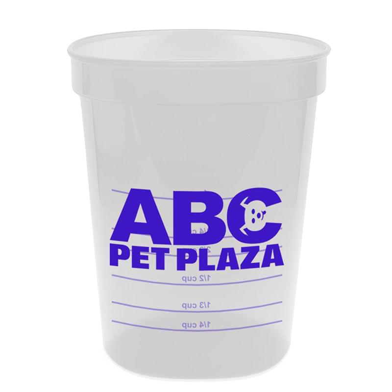 16 oz. Measuring Cup. Translucent Cups with measurements on the side. Use as pet food scoops or portion control cups. BPA -Free, FDA Compliant - Safe for Food Contact. Dishwasher safe - top rack. Optional Lid & Straw available.