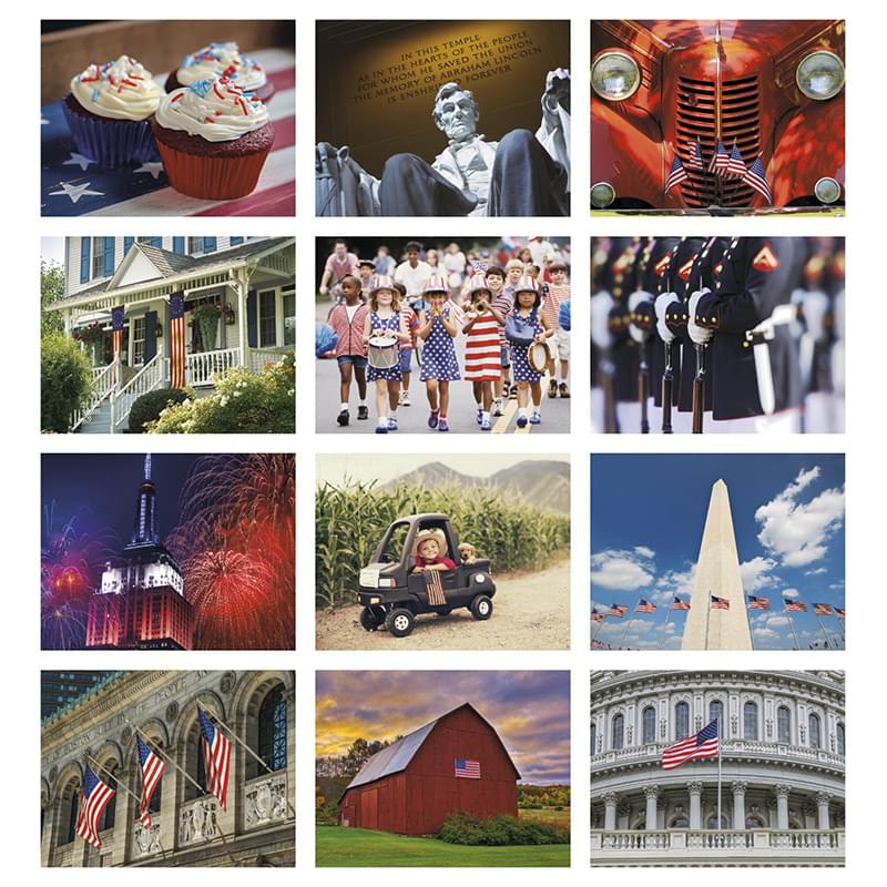This 13-month calendar bursts with patriotic spirit. The FSC® label means that the materials used for this product come from well-managed FSC®-certified forests and other controlled sources.